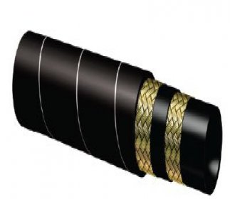 Tubo interno em borracha sintética extrudida uniformemente e sem emendas reforçado com 2 telas de aço cobertas com borracha sintética resistente a óleos, combustíveis e condições atmosféricas.